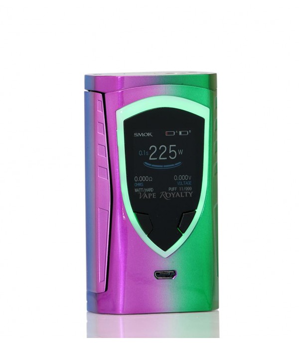 SMOK ProColor 225W Box Mod features the shield shaped functional area that consists of clear 1.3inch TFT screen and Up/Down button. With 225W maximum output, this mod supports Temp Mode for consistent vaping and good taste of every puff, Watt Mode for cloud chasing and Memory Mode. Combined with new operation interface, your vaping details are demonstrated clearly, and it supports 6 colors screen setting.